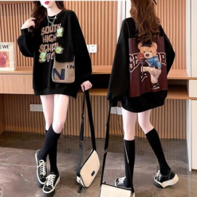 Fanlong Spring and Autumn New Sweater Women's Korean Edition Loose and Lazy Style Long sleeved Top Women's Instagram Print Trendy and Slim Black M [Recommended 80-105 pounds]