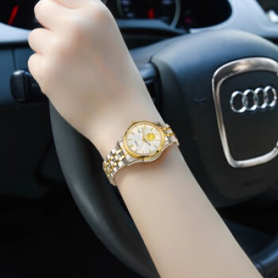 ROSDN Gold Watch Full Gold 999 Gold Coins Real Diamond Watch Women's Mechanical Watch Brand Swiss Quality Women's Watch 【 Zhaocai Nafu Pixiu 】 Medium Gold White Face Steel Strip