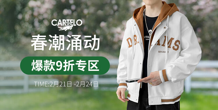 CARTELO Crocodile Coat Men's 2023 Autumn/Winter Jackets Men's Workwear Hooded Casual Charge Men's Clothing Light Blue XL