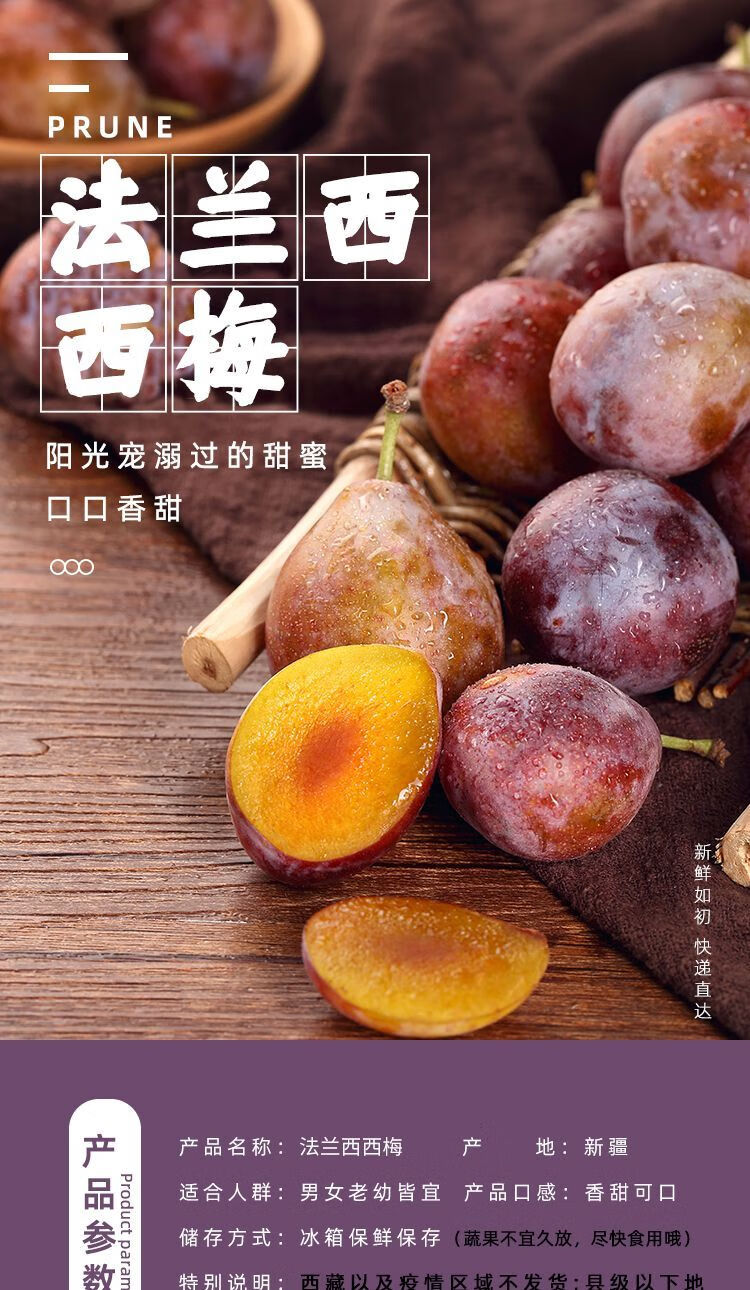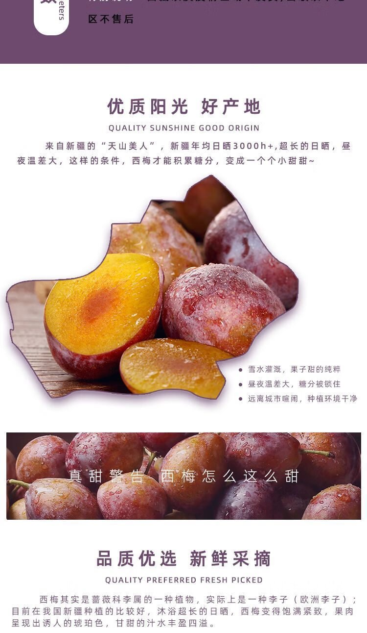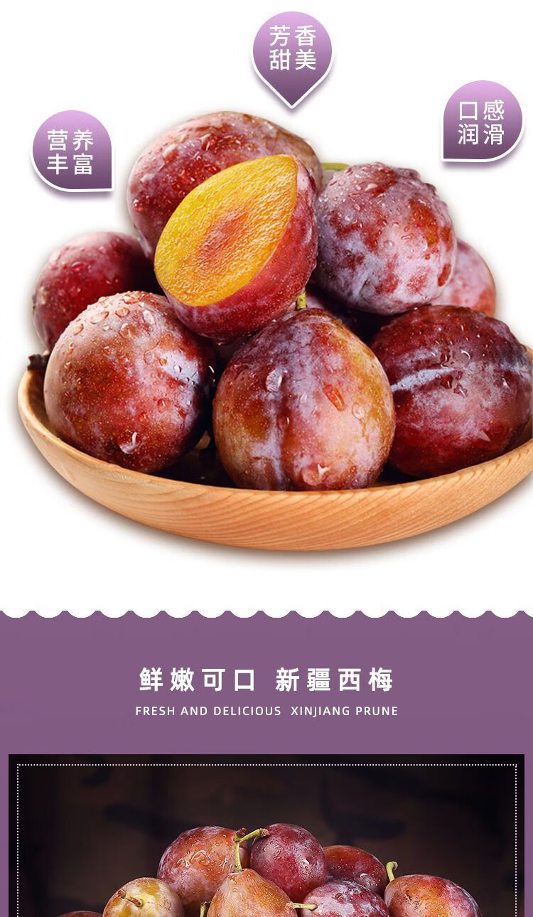 商品名称:【顺丰5斤】正宗新疆法兰西小西梅李子新鲜水果喀什西梅鲜果1斤 正宗喀什法兰西西梅【出口级】 5.01斤带箱【顺丰保鲜】纯甜