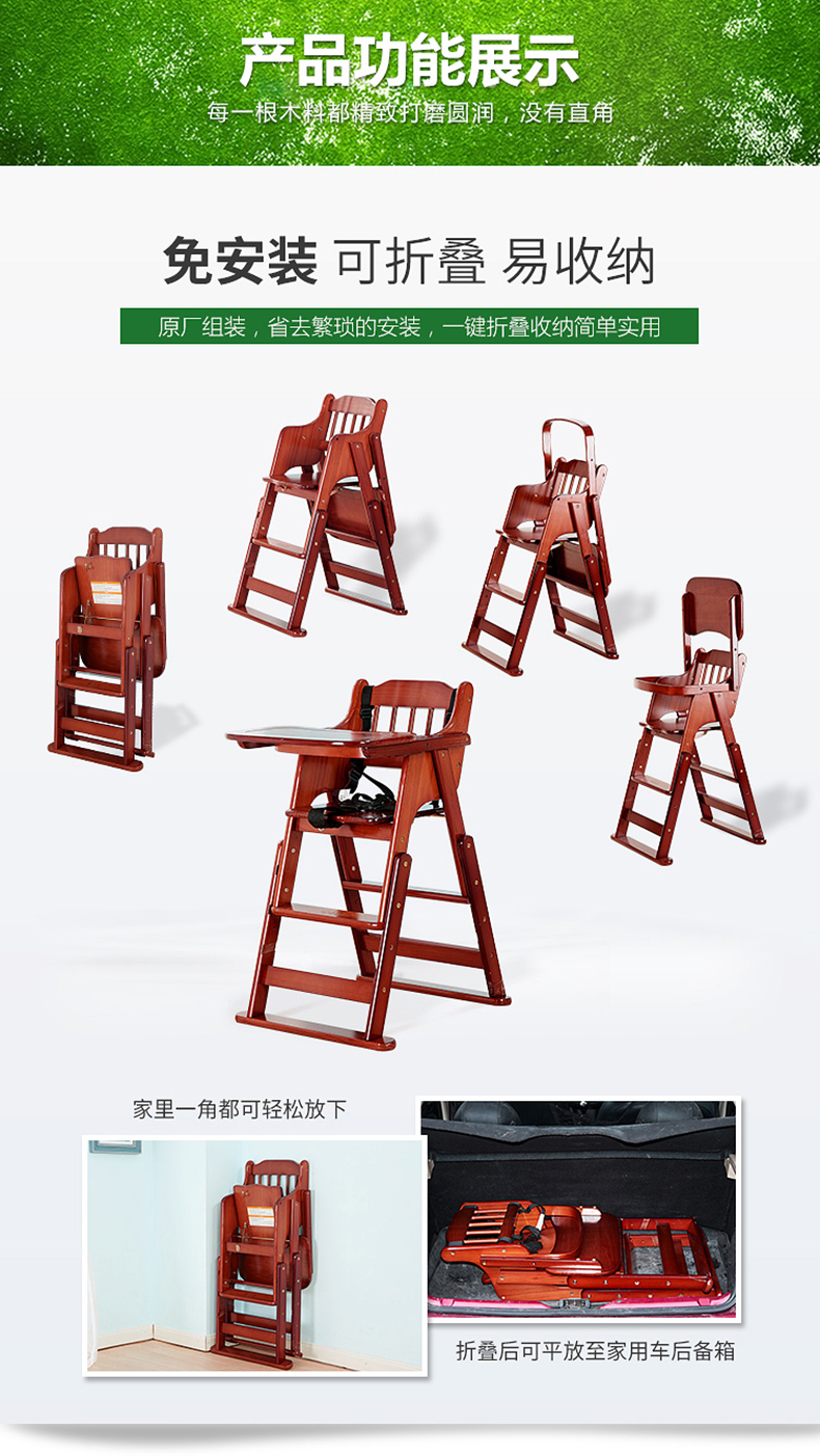 商品名称:henryrabbitHenryrabbit宝宝餐椅实木多功能儿童吃饭座椅调节折叠婴儿餐桌椅 升降深咖色+塑料餐盘【送坐垫】