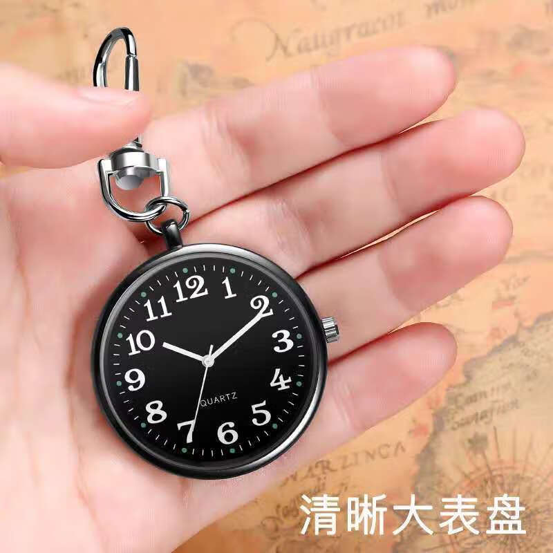 商品名称:蕉迟 老人清晰大数字男士怀表钥匙扣挂表学生考试用石英防水手表护士表 银色 4厘米