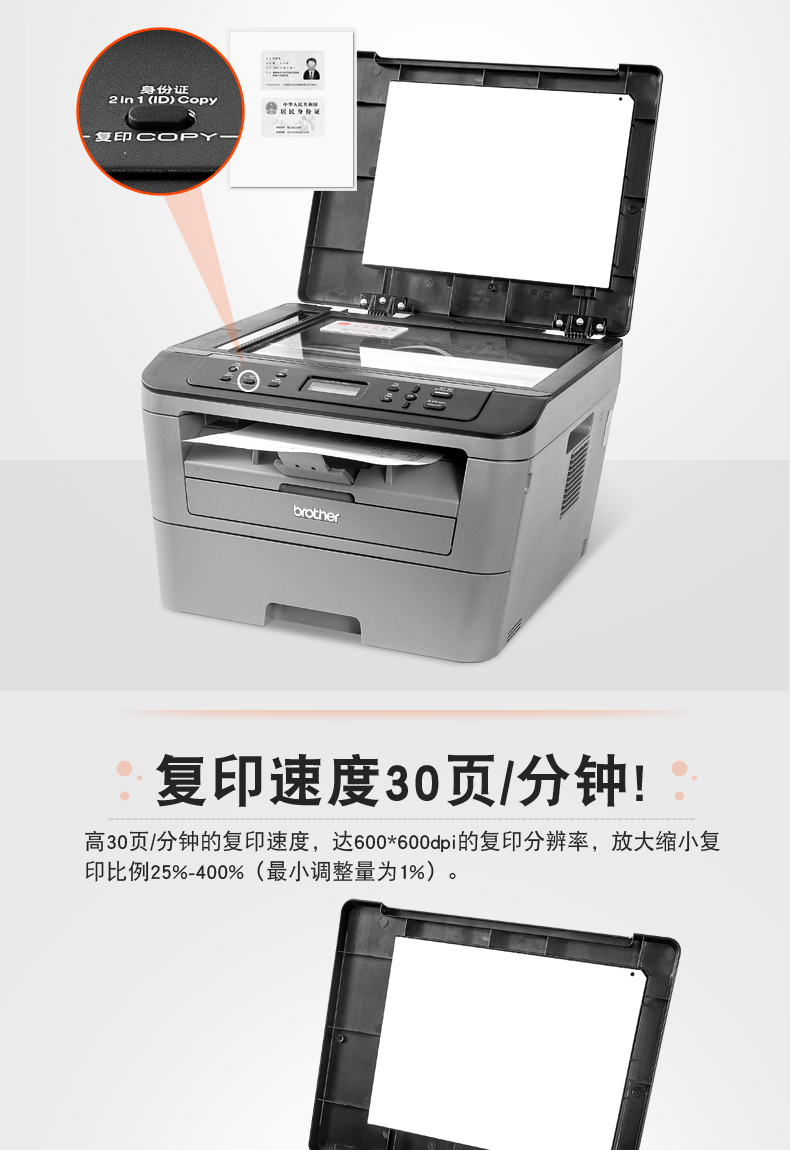 DCP-7080D主机*1、USB线*1、产品安全手册、保修证、快速安装指南、使用说明书、安装光盘