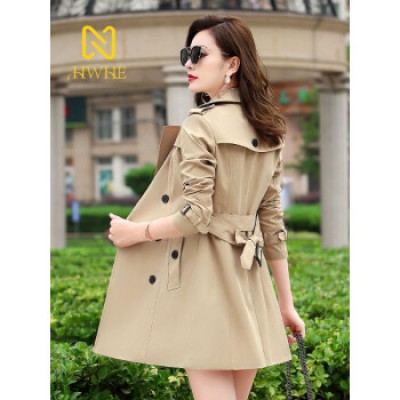 HWHE Light Luxury Brand Women's Windbreaker Coat Spring and Autumn New Korean Version Slim Fit Coat Women's Khaki M/160 (under 95 pounds)