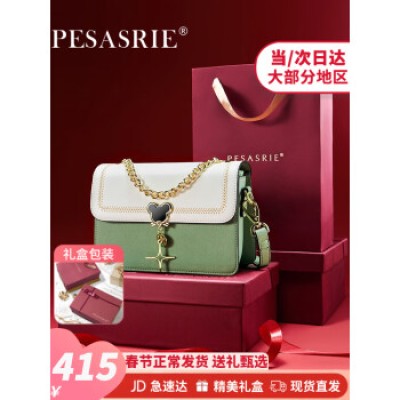PESASRIE brand handbag women's bag, light luxury single shoulder bag, crossbody carrying small square bag, green patchwork white
