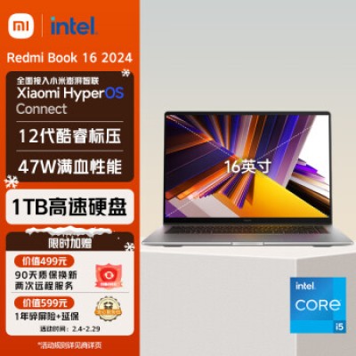 Xiaomi Notebook Redmi Book 16 2024 Core i5 Standard Pressure 16 inch 1TB Office Student Light Book (i5 16G 1T) Starry Grey