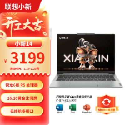 Lenovo Xiaoxin Slim Book, Ryzen Edition Ultra Slim Laptop Xiaoxin 14/14 inches/Ryzen 6-core R5 16G 512G