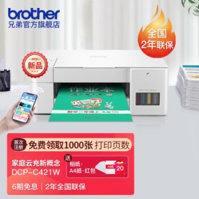 Brother DCP-C421W color inkjet wireless mobile phone wifi printing, copying, scanning all-in-one machine, first activation, 1000 pages of printing, page count, free ink collection