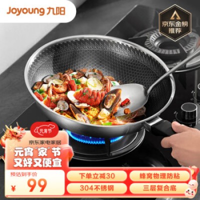 Joyoung wok 304 stainless steel honeycomb non stick vegetable fryer with enlarged flat bottom induction cooker, gas open flame universal 30cm