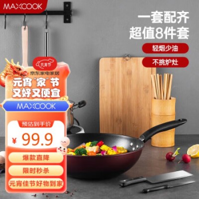 Midea wok iron pot 32cm uncoated precision iron pot for household use, not easy to rust, with a lid and magnetic ignition universal MP-CT32A10