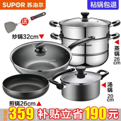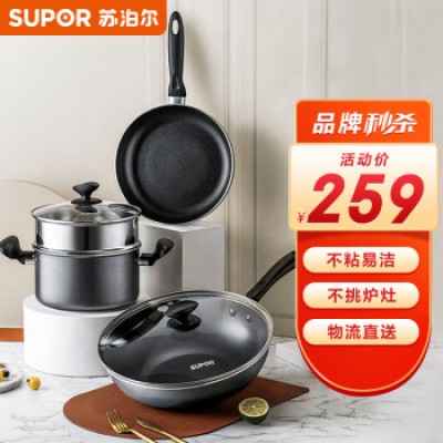 Supor SUPOR cookware set, non stick frying pan, frying pan, soup pot, three piece set, open flame special TP1501E