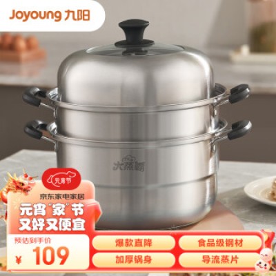 Jiuyang Steamer 28cm Household Stainless Steel Steamer Steamed Mantou Steamer Steamed Bun Steamer Steamed Fish Three Layer Large Capacity Soup Pot CZ113