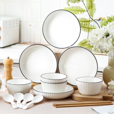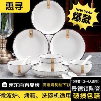 Huixun JD's own brand 16 piece set of European vertical pattern black thread household dishes and tableware set