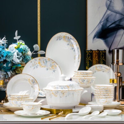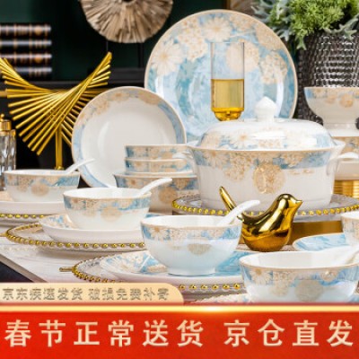 Chen Bowl and Dish Set, Household Jingdezhen Ceramic Tableware Set, Bowl and Chopstick Set, housewarming Gift Bowl Set, 68 Head Set