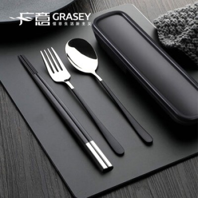 Guangyi 304 stainless steel spoon fork alloy chopsticks set, student travel portable tableware box, four piece set GY7585