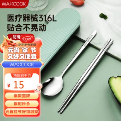 Maxcook 316L stainless steel chopsticks, spoons, tableware set, portable chopsticks, spoons, three piece set, Nordic green MCK5138