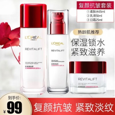 LOREAL Rejuvenation Retinol Anti Wrinkle, Firming, Moisturizing and Moisturizing Lotion Skincare Set, Affordable Three Piece Rejuvenation Set