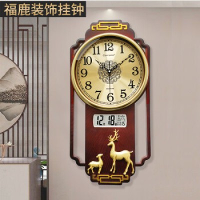 康巴丝(Compas)新中式福鹿日历挂钟家用时尚时钟客厅钟表高档轻奢大气 3349红木(石英机芯)