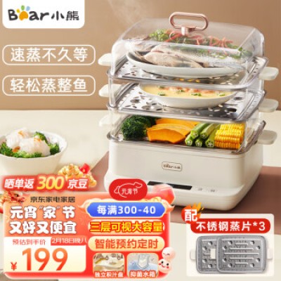 Bear Electric Steamer Steamer Home Visual Electric Steamer Multi functional Breakfast Steaming Fish Three Layer Large Capacity Steamer Stainless Steel Steamer Plate DZG-CA2G2