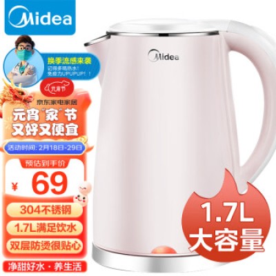 Midea electric kettle 304 stainless steel 1.7L capacity warm water kettle intelligent automatic power off 1705b