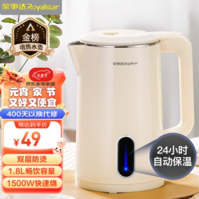 Royalstar electric kettle electric kettle boiling kettle heating kettle boiling kettle household office insulation 304 stainless steel high-power 1.8-liter fast boiling kettle RS-KT18G