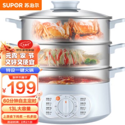 Supor Multipurpose Pot Electric Steamer Multi functional Household Electric Hot Pot Electric Cooking Pot Electric Heat Pot Three Layer 13L Large Capacity Timeable Zn28YK815