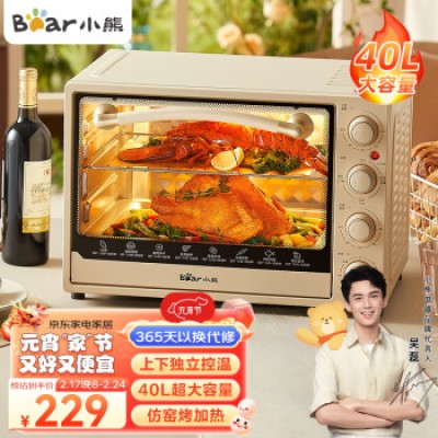Bear Electric Oven 40L, Large Capacity, Multi functional, Independent Temperature Control, Mechanical Control, Multi layer Baking Position, Multi functional Baking Easy to Operate DKX-B40L9