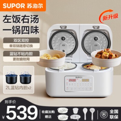 SUPOR Double Gallbladder Electric Rice Cooker Integrated Dual Combination Household 4L Multi functional Intelligent Soup Cooking and Steaming Fully Automatic Dual Control SF20TC601