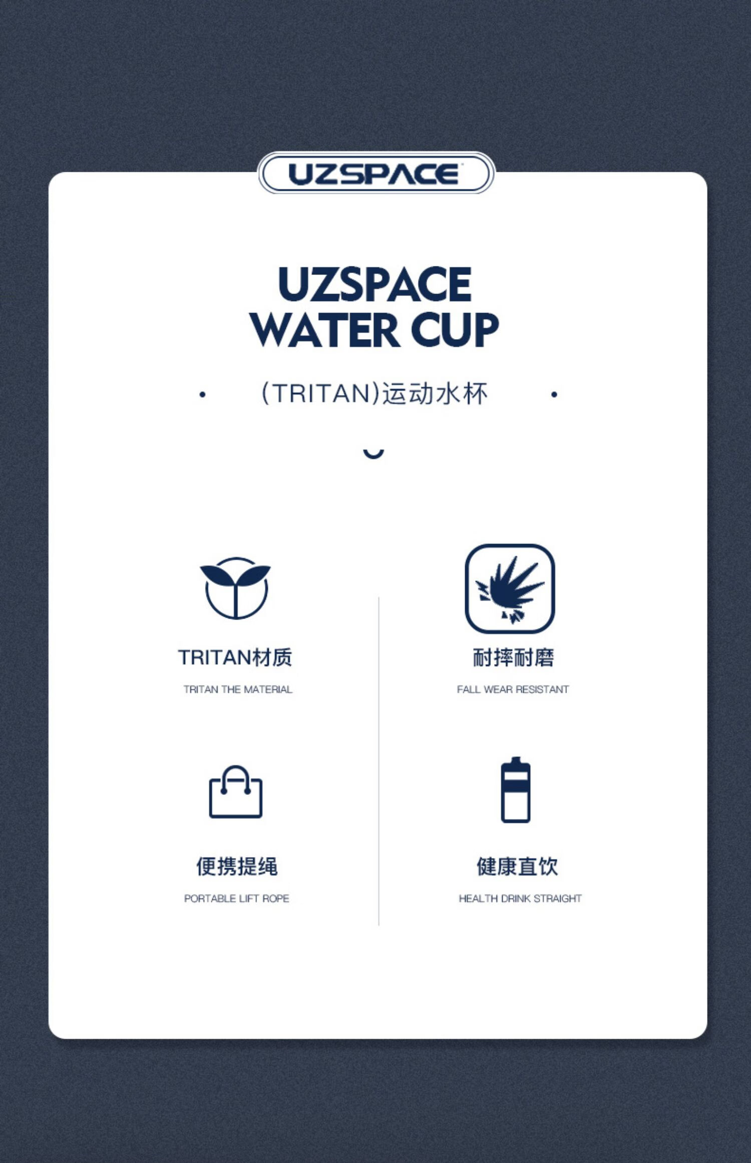 商品名称:优之(UZSPACE) 水杯男女儿童小学生上学夏季塑料水壶瓶tritan户外运动健身杯子 蓝色(5022) 350ml
