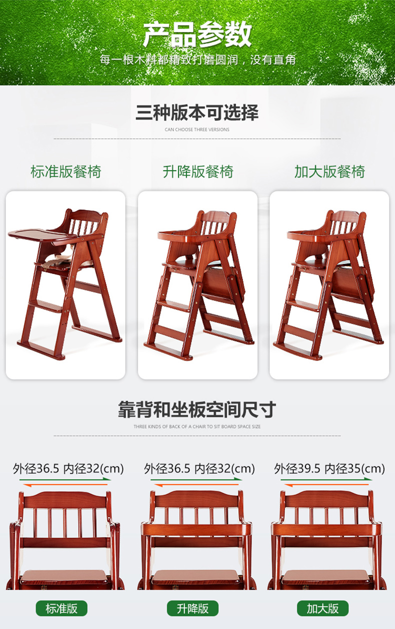 商品名称:henryrabbitHenryrabbit宝宝餐椅实木多功能儿童吃饭座椅调节折叠婴儿餐桌椅 升降深咖色+塑料餐盘【送坐垫】