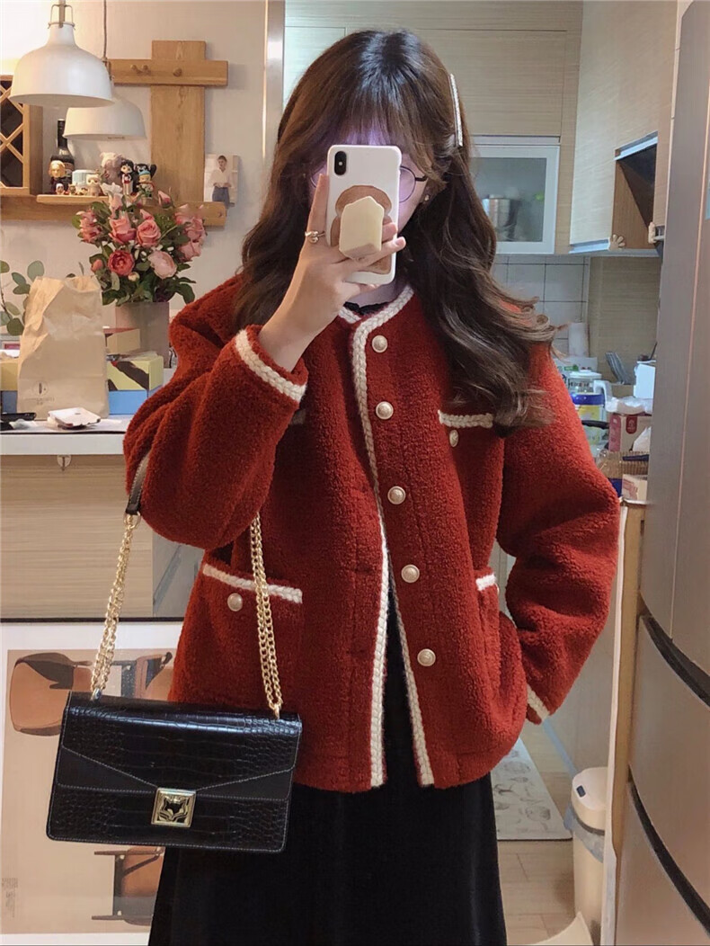 商品名称:妍莉芬(yanlifen)2024年新款春季女装红色外套衣服小香风连衣裙女套装裙子新年战袍 外套+黑色连衣裙 XL