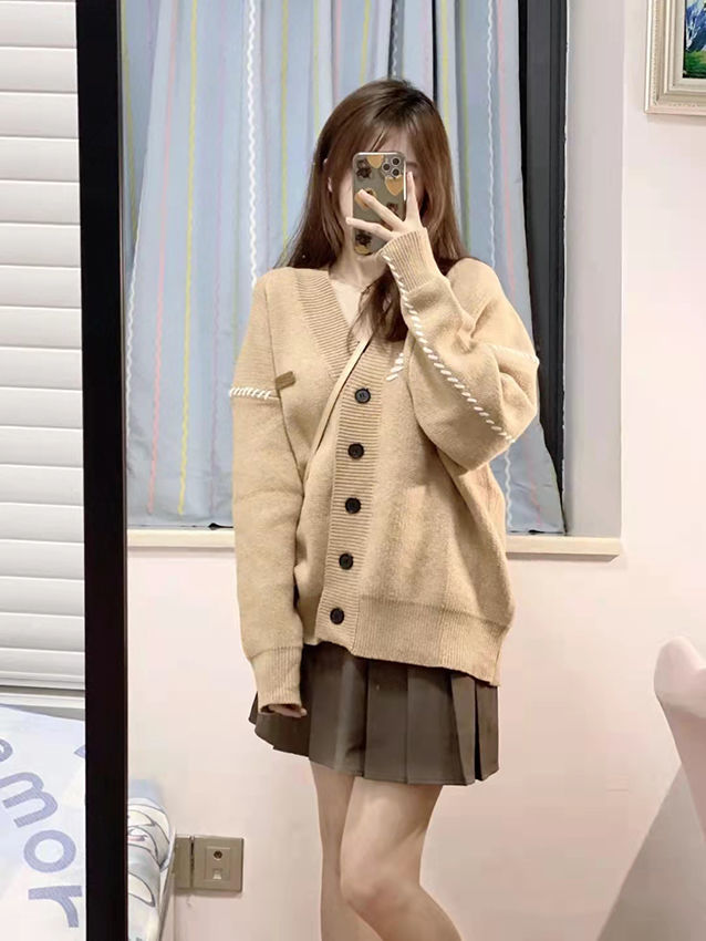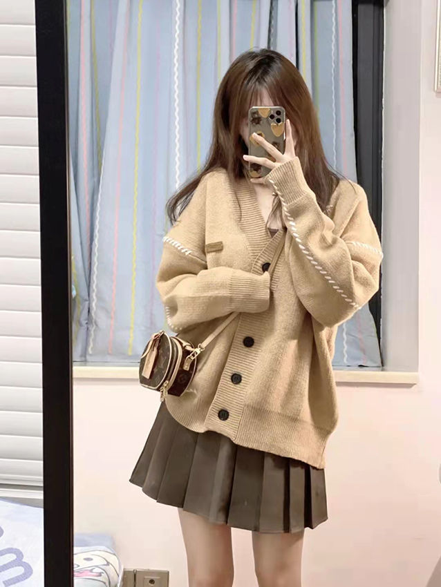 Ou Ruo Ting Ya Autumn/Winter Dress, Women's Small stature, Temperament, Age Reducing Academy Style, Knitted New Pleated Skirt, Korean Fashion Two Piece Cardigan+Pleated Skirt M