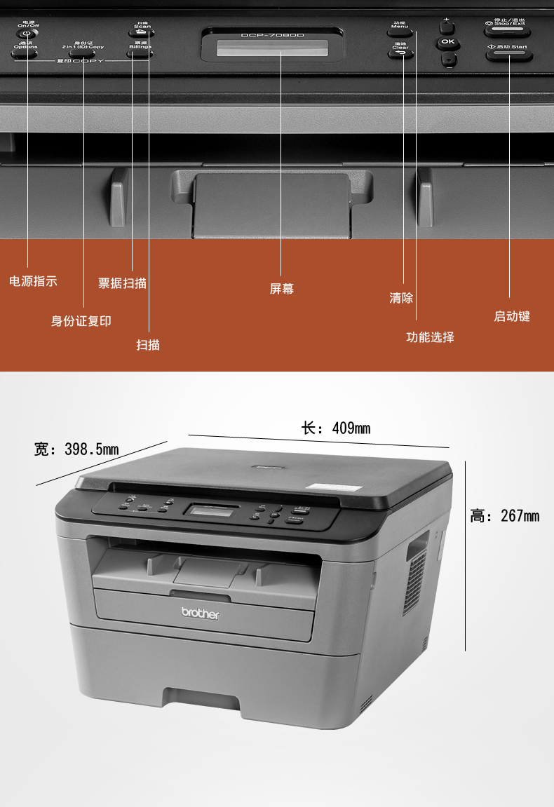 DCP-7080D主机*1、USB线*1、产品安全手册、保修证、快速安装指南、使用说明书、安装光盘
